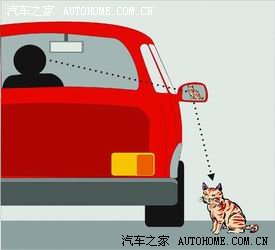 这面镜子在倒车时的主要用处是观察车身右侧有没有障碍物、轮胎离路沿的距离等。为了清楚地了解右侧的路面情况,有时还可在倒车时将这面镜子的角度适当调低(部分比较高级的轿车此侧后视镜是与变速箱联动的,只要一挂入倒挡,就会自动调低10―15度)。